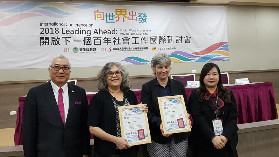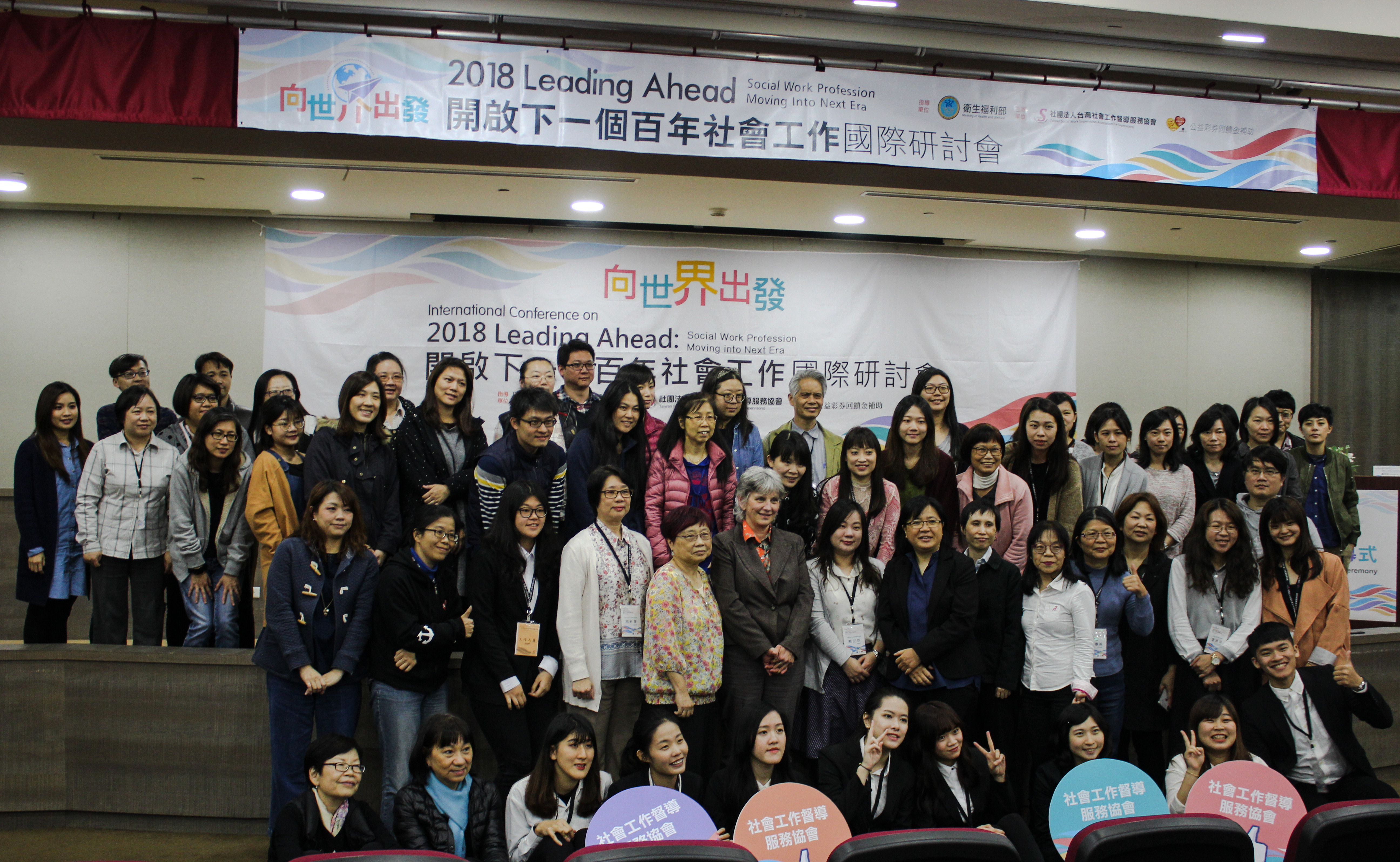 2018 Leading Ahead:開啟下一個百年社會工作國際研討會於107年3月13-14日辦理,兩日共計360人次參與,邀請 2位國際上富有盛名的英國斯旺西大學Dr. Fiona Verity及美國密西根大學(UM) Dr. Lorraine M. Gutiérrez學者進行專題演講,及新加坡Montfort Care首席社工 Ms. See Yim Low(劉詩韻)、資深社工 Ms. Faith Png(方月云)進行交流,借鏡國際社會工作最新的發展方向,從實務經驗發表、國際實務經驗的借鏡、社工督導經驗的傳承以及台灣社會工作的新願景,連接起社會工作督導亦為社會工作一環且具引領社會工作深化及前進的使命及價值。