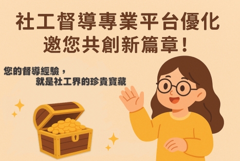 台灣社工督導服務協會接受衛生福利部114-115年公益彩券回饋金補助辦理優化社工督導專業平台計畫第一年期,刻正邀請現任或曾任職於衛生福利部所屬機關(構)、各直轄市/縣(市)政府及所屬機關(構)、其他部會所屬機關(構)、醫院、學校、民間團體、獨立執業或擔任外部督導之實際擔任社會工作師(員)、社工督導或督導職級以上之人員參與擔任督導及接受督導經驗分享。